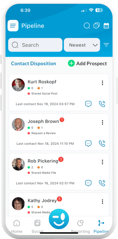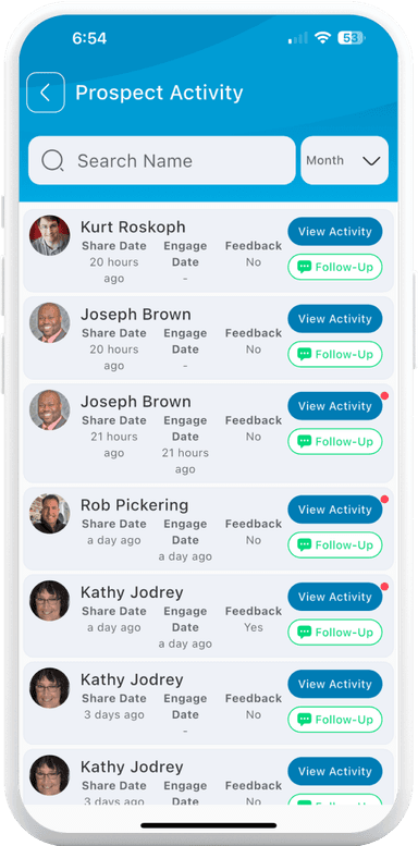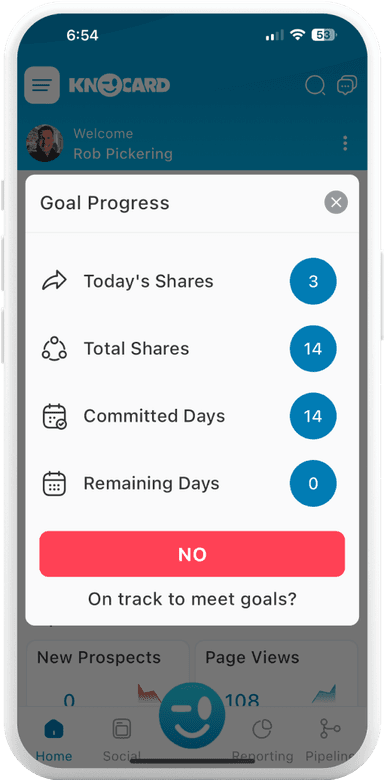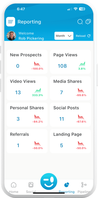 An intuitive, easy-to-read dashboard spotlighting goals, media file sharing, and prospect activity. It offers a quick-glance overview for efficient business management, keeping you organized and focused on your targets.