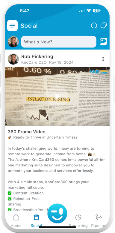 Virtual Sales – Leverage KnoCard's online tools, automation, and digital sharing to reach and convert prospects from anywhere, anytime.